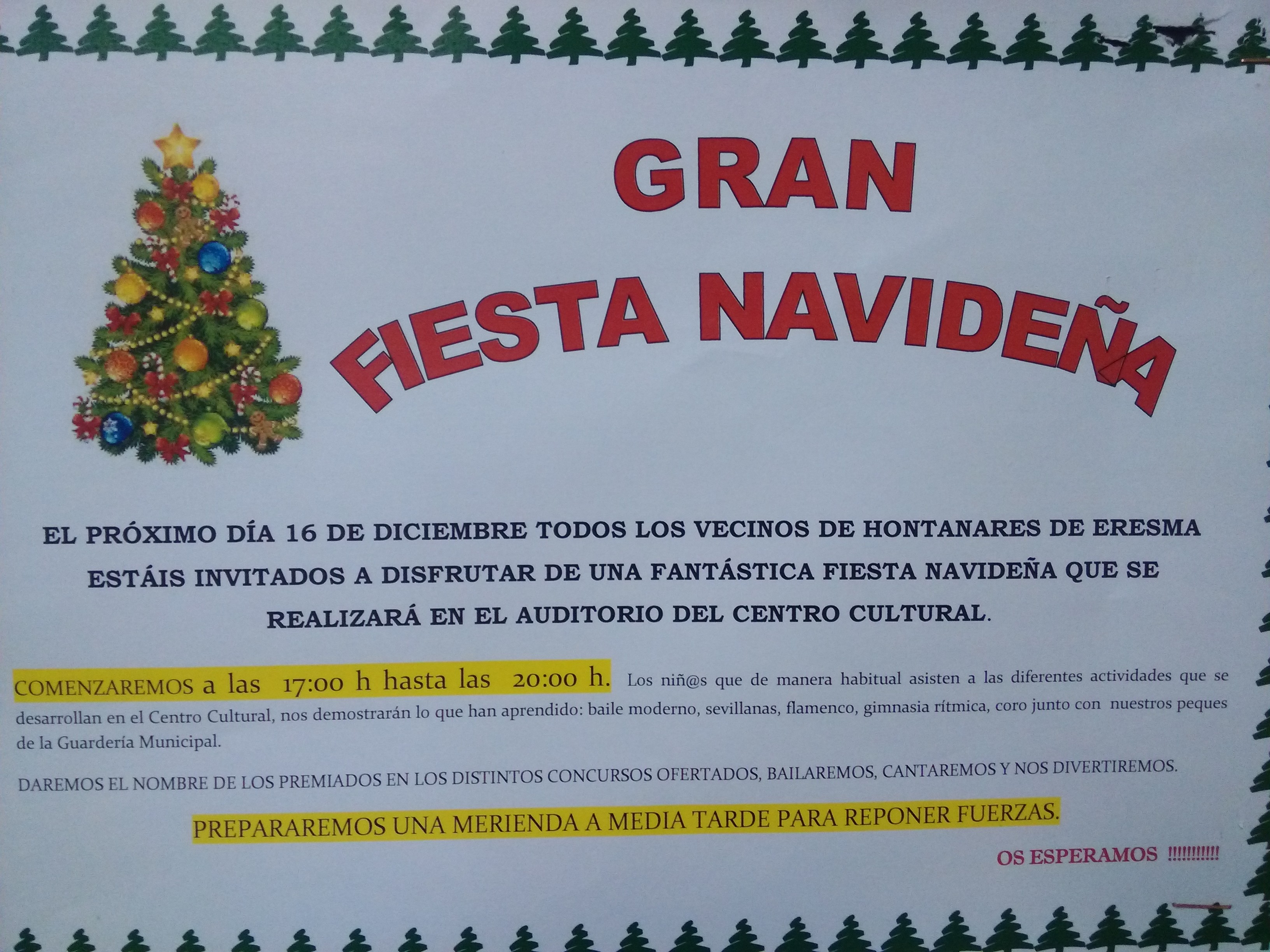 Gran Fiesta Navideña 2016 Gran Fiesta Navideña 2016 El 16 de diciembre, desde las 17:00h hasta las 20:00h, en el Auditorio del Centro Cultural. Habrá pequeñas exhibiciones de los niños que asisten a las actividades extraescolares y una estupenda merienda a media tarde.