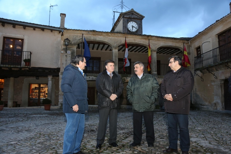 El presidente de la Diputación se desplazó hasta Pedraza en compañía del diputado de Acción Territorial, José Luis Sanz Merino, y del de Cultura, José Carlos Monsalve.
